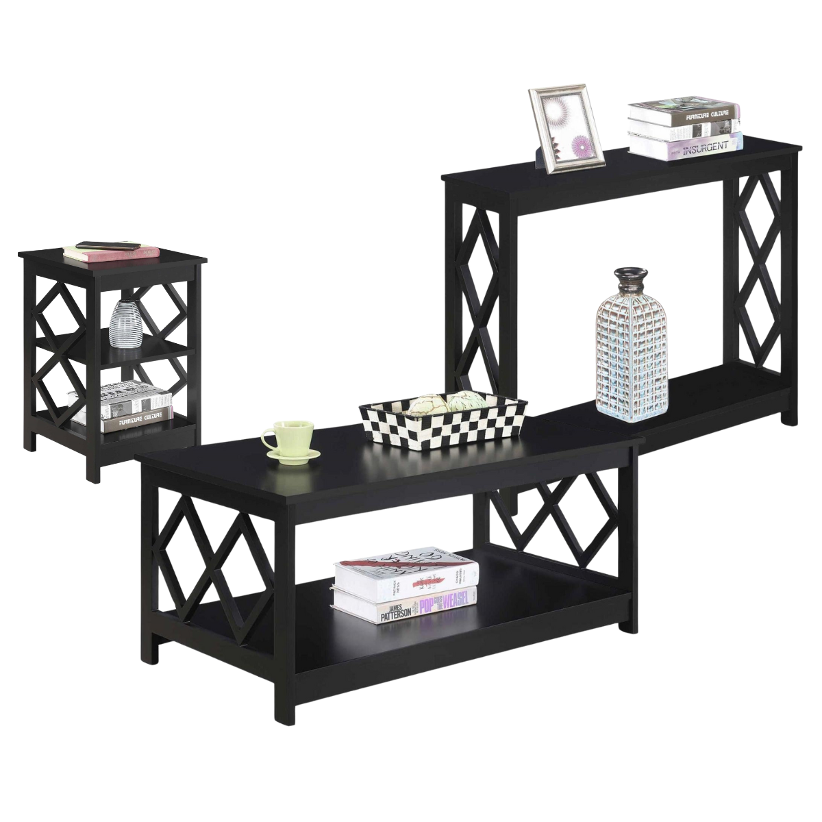 Elevate your living space with our 3pce Diamond Black Coffee Table, Side Table, and Console. Featuring a luxurious diamond-shaped design and sleek black finish, these pieces will add a touch of sophistication to any room. Complete your stylish and exclusive home decor with this premium set.