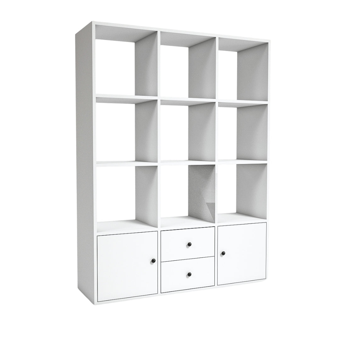 Introducing the Velar 9 Bookcase - the perfect addition to any room! With 9 shelves, 2 doors, and 2 drawers, you'll have plenty of space to store your books, decor, and more. Plus, the sleek design will add a modern touch to your space. Organize in style with Velar 9!